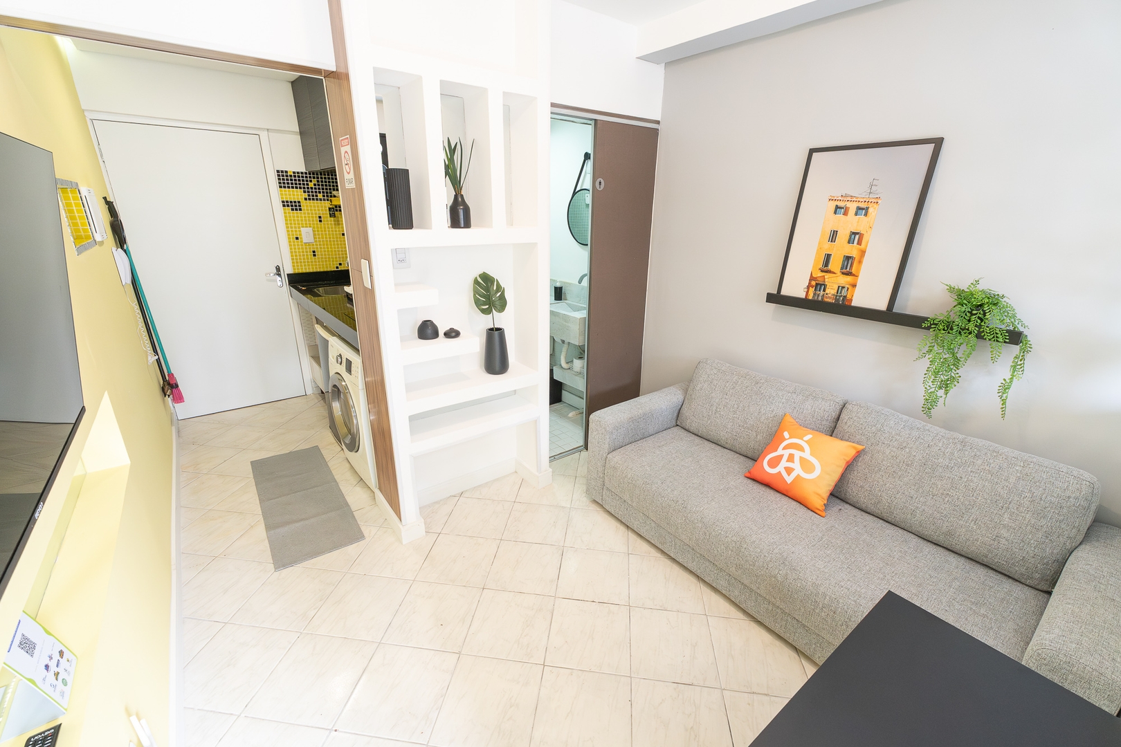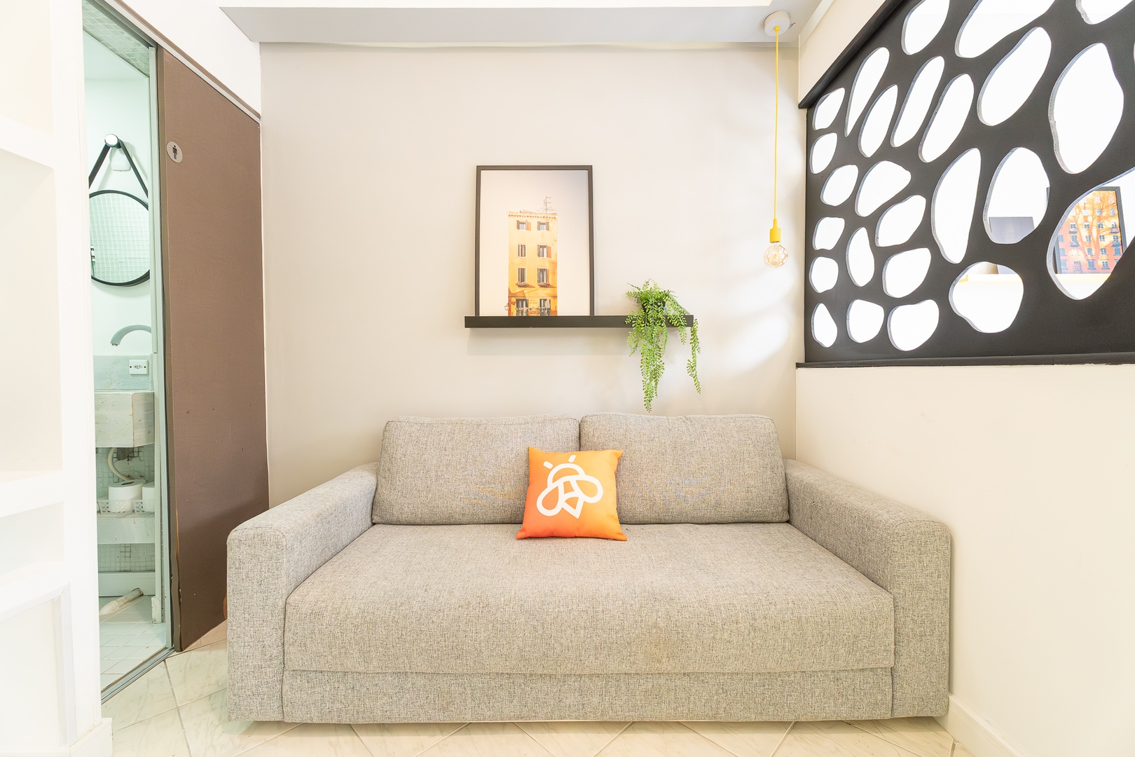 - Quarto e sala integrados, mas com cobogó para privavidade;